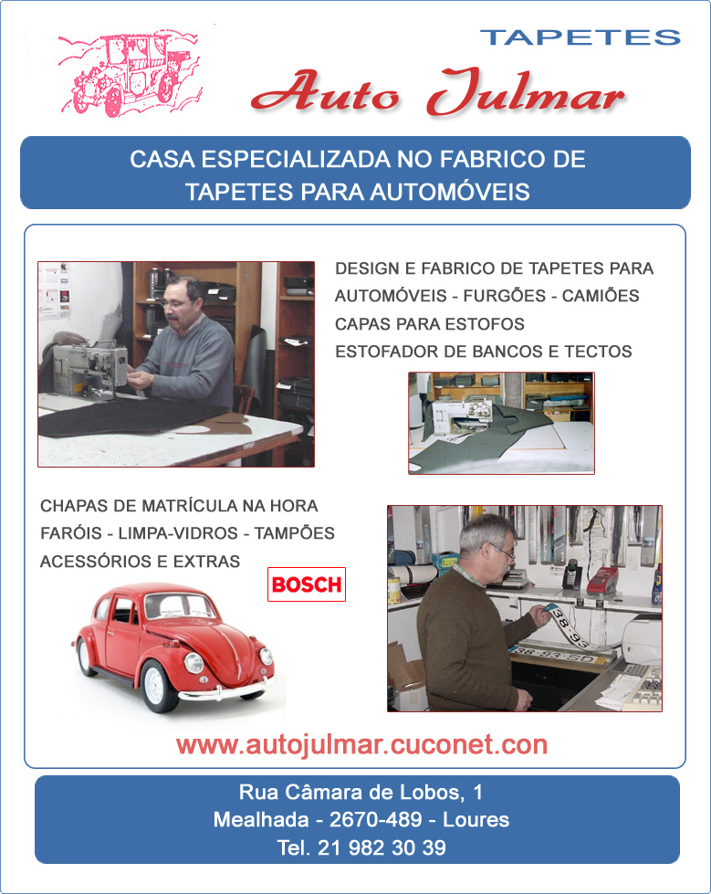 AUTO JULMAR Tapetes para Automóveis - Estofador de Automóveis - Chapas de Matrícula Loures - Odivelas www.autojulmar.cuconet.com www.odiveloja.com